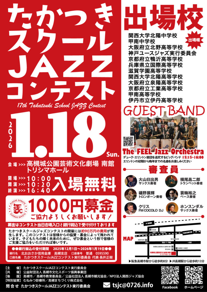 第17回たかつきスクールJAZZコンテストの開催が決定しました。